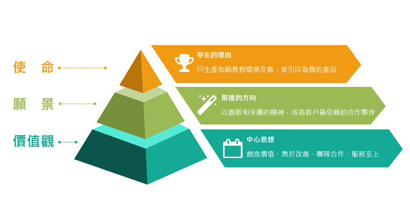 從設計到生產,秉持生產優良產品的理念,落實綠色環保的概念,替客戶及其消費端打造雙贏局勢,同時達到永續發展的經營願景。