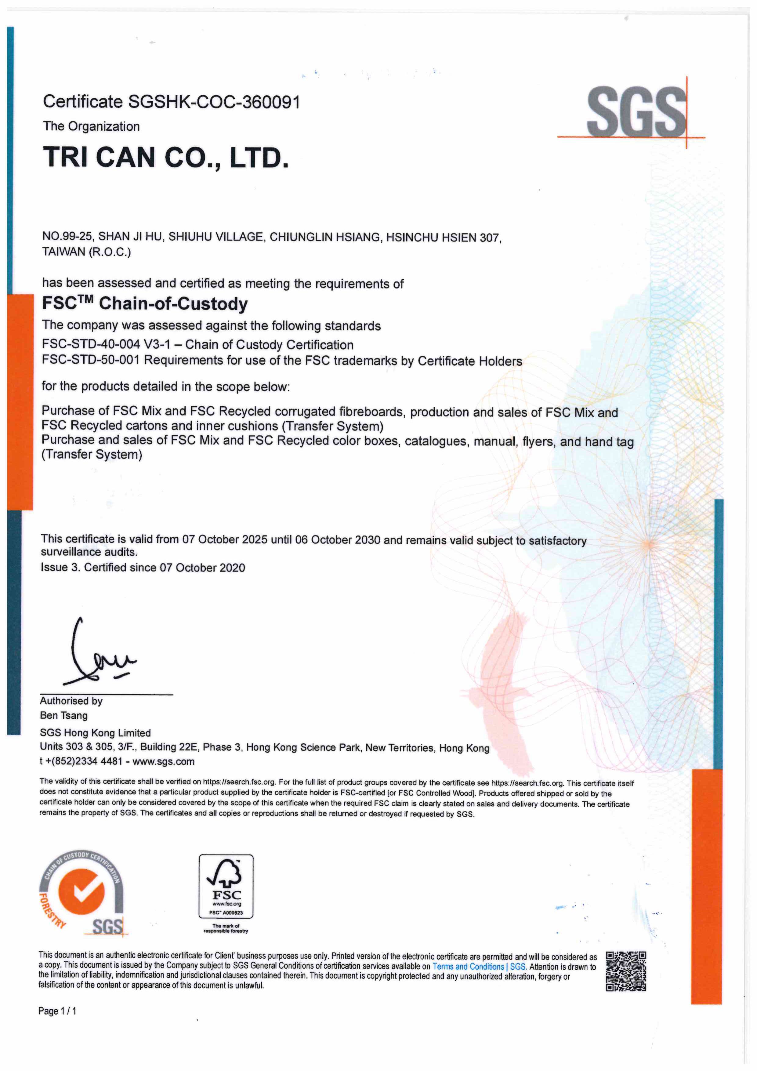 品質認證 首頁 品質認證 把專業交給專家 把包裝交給山健 山健包裝以此口號為職志,1992年創立至今,榮獲多次台灣包裝之星與綠色包裝首獎並獲得多項世界專利 專利證書 2022年度溫室氣體盤查意見書 碳足跡查證聲明 EMS QMS FSC&能源管理系統